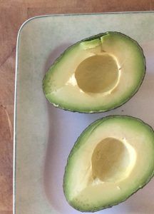 Hass avocado’s zijn wat bobbelig (schil) en liefst wat donker (zwart) van kleur. Voel en knijp lichtjes om te kijken of hij wat zacht is. Dan is hij rijp. Haal voor de zekerheid het “dopje” van de bovenkant af. Als het hieronder groen is dan is hij (nog) goed. Als dit zwart is dan is hij overrijp en zou ik hem laten liggen.