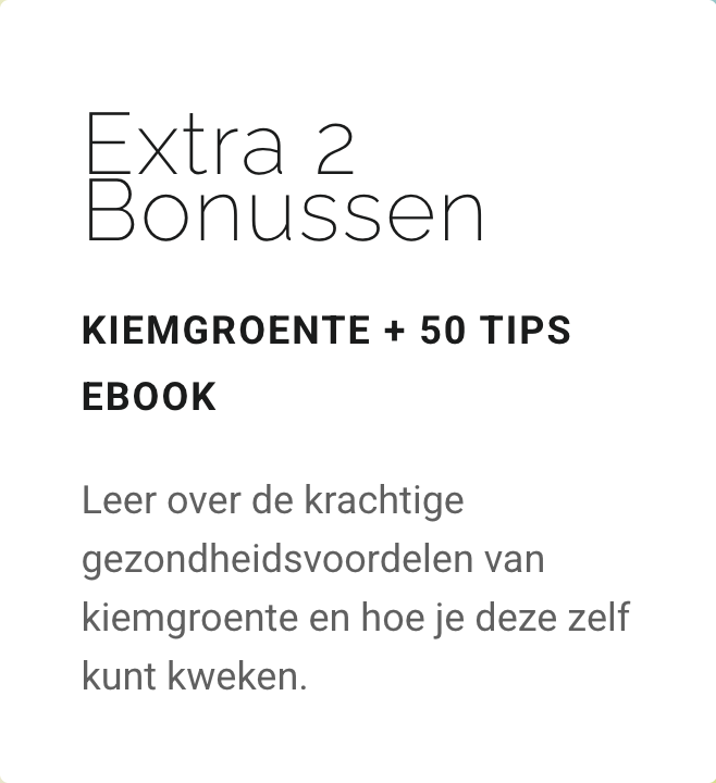 In mijn online cursus – Master your Health and Happiness, zal ik je laten zien hoe je je levenskracht weer terug kunt winnen en hoe je zo optimaal mogelijk voor jezelf kunt zorgen om zo fit mogelijk te worden en energierijk.